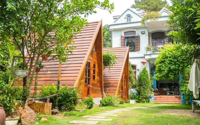 Về không gian, thì đây là một trong những homestay sân vườn có không gian thoáng rộng nhất, được thiết kế vô cùng đẹp mắt và gần gũi với thiên nhiên. Không chỉ là không gian ở bên ngoài mà cả bên trong căn phòng tại đây cũng được thiết kế khá độc đáo và lạ mắt với những hình mái nhà “hình tam giác”, mang lại cho bạn một trải nghiệm mới lạ và đầy thú vị, nhưng vẫn mang đến sự gần gũi và ấm áp.
